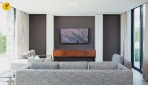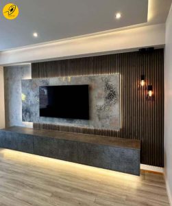 دیوار شاخص، که با سنگ تزئین شده است، می‌تواند به عنوان یک ویژگی چشم‌نواز در خانه شما عمل کند. این دیوار می‌تواند با استفاده از سنگ‌های متنوعی مانند مرمر، گرانیت، آجر یا رزین، به عنوان پس‌زمینه‌ای جذاب برای تلویزیون شما تبدیل شود. در حالی که این دیوار شاخص به عنوان نقطه کانونی عمل می‌کند، سایر دیوارهای خانه را می‌توان با کاغذ دیواری‌های خاص و رنگ‌های چشم‌نواز، مانند طلایی یا سفید صدفی، تزئین کرد. این ترکیب از سنگ و کاغذ دیواری، فضایی شیک و لوکس را ایجاد می‌کند که زیبایی و ظرافت را به خانه شما می‌آورد.