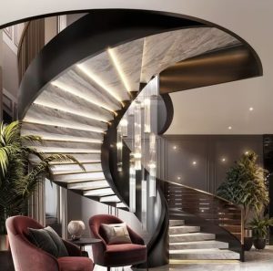 9- نورپردازی زیبا و جذاب در دکوراسیون راه پله ویلا