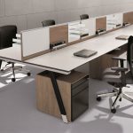 میز کار گروهی (Workstation) 👥 یک ساختار یکپارچه و طولانی که چندین فضای کار را در کنار هم قرار می‌دهد. معمولاً با پارتیشن‌های کوتاه برای ایجاد حریم نسبی جدا می‌شود. بهینه‌سازی فضا، افزایش همکاری و تعامل در تیم‌ها. شرکت‌های استارتاپی، آژانس‌های تبلیغاتی، مراکز تماس (Call Center) و فضاهای کار باز. مدیریت صدا (آکوستیک) با استفاده از پارتیشن‌های جاذب صدا بسیار حیاتی است. سیستم کابل‌کشی مشترک آن را کارآمد می‌کند.