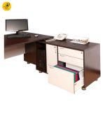 این میز کارشناسی مدرن با طراحی کشوها و کمدهای بزرگ و جادار، به شما کمک میکند تا وسایل خود را به خوبی نگهداری کرده و فضای اتاق را منظم کنید. این ویژگیها از بینظمی ناشی از وسایل و مدارک اداری که ممکن است ظاهری نامناسب داشته باشند، جلوگیری میکند. کشوهای بلند این میز امکان قرار دادن وسایل بزرگ و مرتفع را نیز فراهم میآورند. همچنین، قفلهای تعبیه شده بر روی آن، امنیت وسایل شما را تضمین میکند.