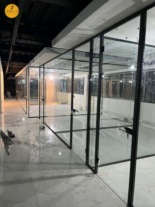پارتیشنهای اداری تک جداره شیشهای مدل Da78، انتخابی مناسب برای ایجاد فضاهای کاری مدرن و شفاف هستند.