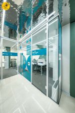 شیشه‌های دودی، سفید و فلوت به کار رفته در این پارتیشن‌ها، نه تنها زیبایی و جذابیت بصری را افزایش می‌دهند، بلکه به کنترل نور و حریم خصوصی نیز کمک می‌کنند. شیشه دودی به طور خاص برای فضاهایی که نیاز به کاهش تابش نور دارند، مناسب است. از طرفی، شیشه سفید جلوه‌ای روشن و دلنشین به محیط می‌بخشد و شیشه فلوت با سطح صاف و شفاف خود، نمایی مدرن و شیک را فراهم می‌کند.
