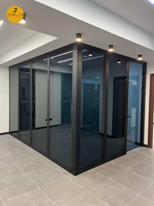 به دنبال راهکاری مدرن برای تفکیک فضا هستید؟ با پارتیشن دوجداره شیشه دودی، علاوه بر زیبایی، از حریم خصوصی و عایق صوتی فوقالعاده بهرهمند شوید.