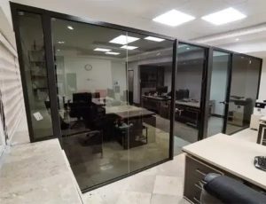 پارتیشن فریم لس با فریم آلومنیومی و شیشه سکوریت |